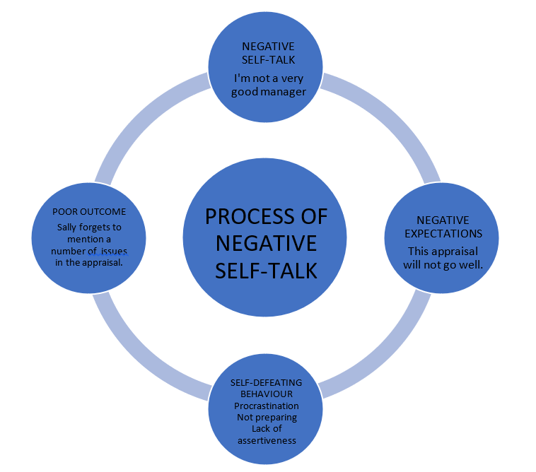 Εδώ είναι ένα μοντέλο (Προσαρμοσμένο από τους Anthony Grant και Jane Greene Είναι η ζωή σας. Τι πρόκειται να κάνετε με αυτό; Coach Yourself p 121) για να μας βοηθήσετε να κατανοήσουμε αυτήν τη διαδικασία σχετικά με την άποψη της Sally για τον εαυτό της ως διευθυντή και πώς την επηρεάζει αρνητικά αξιολογήσεις του προσωπικού.